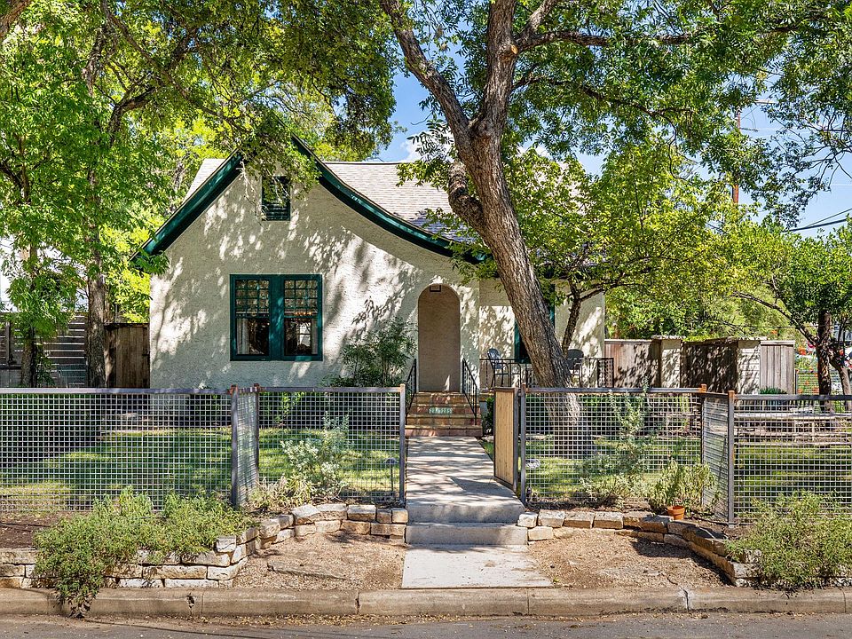 Beautifully restored 1932 Tudor in Shoal Crest, just east of Pemberton with fabulous walkability. Carefully maintained by its interior designer owner, this home blends privacy with an unbeatable central location. The fully fenced corner lot is minutes from downtown, the University of Texas, Shoal Creek Trail, Pease Park, and neighborhood favorites like Tiny Boxwoods, Musashino Sushi, Counter Cafe, and Central Market. Inside, arched entries, custom built-ins, and refined finishes create a timeless yet fresh feel. Every space balances comfort and function, wrapped in a warm, inviting style. The primary suite offers a true retreat with its own fireplace, a library with built-ins and desk space, a walk-in closet, and a screened porch—perfect for quiet mornings or unwinding at day’s end. The en-suite bath is elevated with French hand-painted tiles. A second en-suite bedroom at the front of the home provides comfort and privacy for guests. Outdoor living includes a welcoming front patio, a vine-covered pergola for dining, and a shaded lawn under mature trees. An automatic gate, garage, and additional parking complete this rare opportunity to own a restored Tudor in one of Austin’s most desirable pockets.