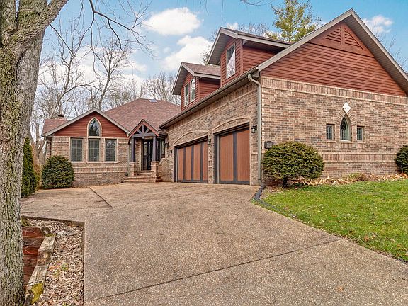 Fantastic home situated on an amazing 1/2 acre secluded lot on a cul-de-sac in desirable Rivercut with woods, trails, firepit, creek and additional wet weather creek, waterfall and gardens and perennials at every turn. This beautiful home has been meticulously maintained and offers so many flexible living spaces and opportunities for growing families, work-from-home situations or just those who value the peaceful outdoors and quality built homes. With multiple areas to relax indoors and out, the peaceful spaces are what really set this home apart. Beautiful solid cherry hardwood floors in the main living areas, lovely screened-in porch, 2 fireplaces, a relaxing hearth room located off the kitchen, formal dining, oversized primary suite and a flexible third living space perfect for a game room or workout area are just a few of the highlights. You'll also find an oversized laundry/mud room on the main floor, and additional room that could be a 5th bedroom on the second floor and 2 more bedrooms, a wet bar, bathroom and living space all in the basement. Boasting tons of storage space on all levels with walk-in closets, storage closets, basement storage room & tornado shelter and for peace of mind an encapsulated crawlspace, this home truly has it all. The lovely Rivercut subdivision offers community amenities including pool, clubhouse, & public golf course.