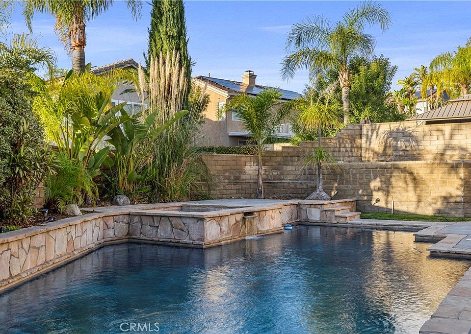 Step outside to your own private oasis. This entertainer’s backyard features a sparkling pool, spa, outdoor gazebo/bar, flat-screen TV, and multiple seating areas—an absolutely perfect space for hosting gatherings or creating new memories.