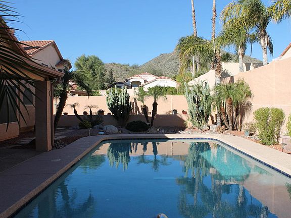 Wonderfully updated, move in ready home centrally located! Eat in, island kitchen w/granite counters, stainless appliances. Open floorplan w/Living, dining, family room. Large master w/walk in closet, bay windows, sep shower & tub, upgraded counters, vanity, mirrors. Den would make a great home office/media/playroom. Tile & wood lam flooring throughout. Private pool features new pebbletec surface w/in floor cleaning system, new cool decking. Enjoy superb mountain views from your covered patio and beautifully landscaped backyard. HVAC replaced 2011, irrigation system updated 2016. Close to SR51, dining, shopping, schools, hiking/biking. This is truly a move in ready home!