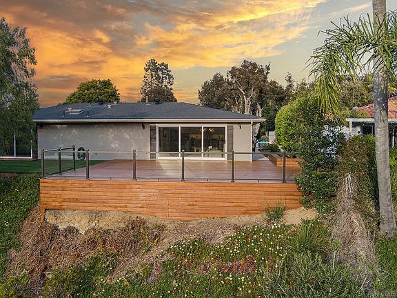 Welcome to this exquisite single-level canyon view home, where modern elegance meets inviting comfort. Designed for seamless entertaining, the open great room floor-plan features a gourmet kitchen at its heart, complete with sleek stainless steel appliances, stunning granite countertops, and a spacious center island ideal for culinary creations and social gatherings. The dining area and family room, offer ample space for relaxation, with oversized sliders framing breathtaking canyon views. A decorative fireplace and built-in storage add charm and practicality. Embrace the ultimate indoor-outdoor lifestyle with fully sliding doors leading to a tranquil backyard oasis. Here, a new deck by the award-winning Fraser Decks awaits, featuring a spa-ready pad and surrounded by lush landscaping. This outdoor haven provides endless opportunities for al fresco dining, sunbathing, or simply savoring the serene canyon backdrop.The primary bedroom offers a retreat-like ambiance with its tranquil canyon views and luxurious ensuite bathroom, boasting a walk-in shower, double sink vanity, separate wash closet, and a large walk-in closet. Two additional bedrooms and remodeled bathrooms ensure comfort and convenience for family and guests alike. Unique features such as an oversized driveway, expansive side yards, a tankless water heater, and air conditioning further enhance this home's appeal, combined with fresh paint throughout and motorized blinds. With its thoughtful design, contemporary amenities, and peaceful setting, this property is truly a harmonious home.