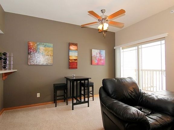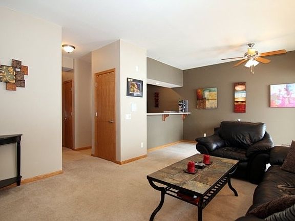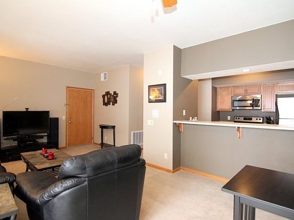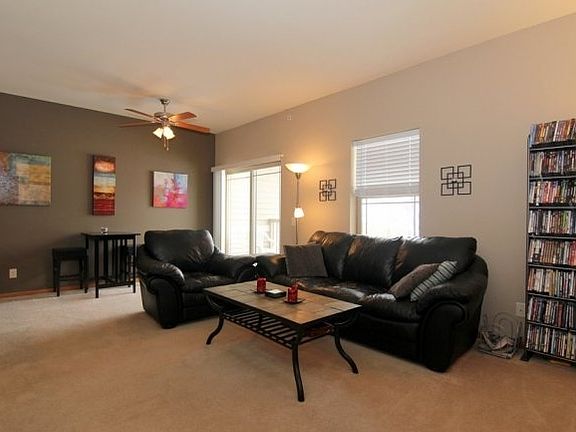 Across from parks and bike/running trails that will take you for miles! Spacious 2 bedrooms, 1 bath with a 1 car garage. This home is well taken care of and very clean. Open concept floor plan with living room, dining and kitchen that flow into each other. This unit faces west from the living room with great sunsets. Private full size laundry is in the condo. Master bedroom is very large and has a walk-in closet that can organize all your clothes and more. Second bedroom overlooks the tree line. 998 sq. ft. of living space, garage and storage unit combined 378 sq. ft.