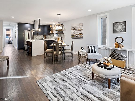 Opportunity to own gorgeous building. Live in luxury and collect rent. Two units consist of: duplex down 3 bed / 2.5 bath; duplex up 3 bed /2.5 bath. Two units both offer large living rooms open to kitchen with custom cabinetry, quartz countertops and full backsplashes and top-of-the-line stainless steel appliances. All bathrooms have marble and top-notch fixtures. Master bedroom has spa-like private bath and generous closet space. In-unit laundry and garage. Comes with a 2-car garage. Von Linne school district. Walk to public transportation and all that Avondale and Logan Square have to offer.
