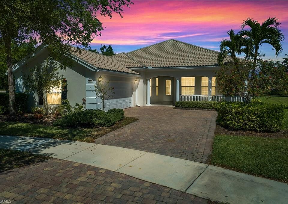 If you are looking for Multi-Functional rooms, check out this gem. Nestled in the heart of Village Walk of Bonita Springs, this pristine home boasts the largest lot in the complex, offering both space and elegance. Featuring five bedrooms, this residence awaits your personal touch – envision it as a blank slate where you can design your own floorplan to suit your lifestyle needs. If you are a front porch lover, here is where you will relax and enjoy the Florida lifestyle. But that is just the first visual of your new home. Once you open the door you will be awed by the fact that each room has been meticulously updated, showcasing the current owner’s configurations, who, despite being only two people, have utilized the five bedrooms to their advantage. This Classic Carlysle model is a must-see, with quality enhancements throughout that transforms it into its own model. How will you configure this home?. Say goodbye to carpets; this home features tile and luxury vinyl planks in every room, complemented by an abundance of ceiling fans. The bathrooms are equipped with high top counters, and elegant quartz with soft close doors that elevate the spaces. Custom doors on closets in each room add a dramatic change from the glass closet doors in the original Builders package. The updated kitchen is a chef’s dream, complete with modern amenities that add a touch of sophistication including Quartz counters, soft close doors, and Custom cabinetry that will wow you! When you look around, it will become obvious that this is THE ONE that has it all. The garage door is sealed and outfitted with a portable dehumidifier to maintain low humidity, ensuring a pristine environment. Unusual for most garages here in SWFL. At the back of the home where most of the living will be done, once outside, you step onto the expansive lanai, perfect for entertaining, and can't help but be amazed by the Swim Spa that overlooks the tranquil water. While it is a formidable structure, there is an immense lanai space to do with as you wish. Outdoor space here is not a problem. This home is truly a gem, offering both luxury and comfort in one of Bonita Springs’ most sought-after communities. If you have dreamed of owning an expansive water view home that has a unique floor plan and room for everyone, check the video and make an appointment to view this property