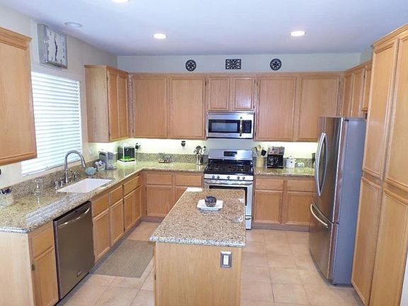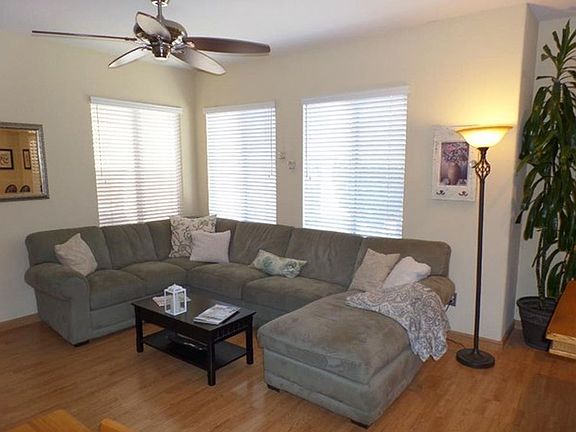 This inviting home has style and flair that pulls everything together! Rich wood like flooring sweeps through living room, formal dining room and family room! Vaulted ceiling in formal living room and dining room with overhead windows bringing in natural light! Updated kitchen with gleaming granite counter tops, center island, stainless steel appliances, lots of cabinetry and recessed lighting. Kitchen opens to large family room with cozy fireplace, ceiling fan and slider with plantation shutters. Downstairs powder room. Upstairs landing with tech area. Vaulted ceiling in master bedroom with ceiling fan, upgraded baseboards and hillside views. Master bath features crown molding, dual sinks, separate shower, soaking tub and walk in closet. Both secondary bedrooms feature wood like flooring and ceiling fans. Upstairs bath with wood grain tile flooring, crown molding, large vanity and shower/tub combo. Upstairs laundry room with updated baseboards and crown molding. No rear neighbors. Relax in the above ground spa or unwind by the firepit!Close to community pool and spa!