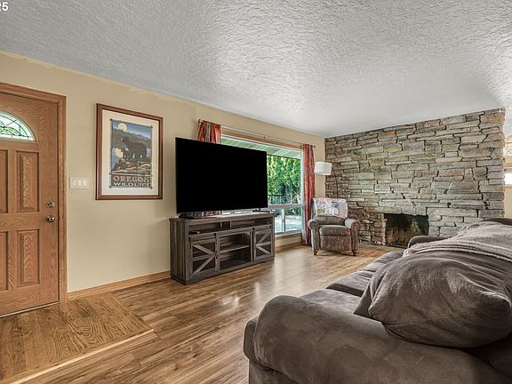 Charming ranch-style home in the desirable Shick neighborhood! This 3-bedroom, 2-bath home offers an inviting open-concept layout filled with natural light from numerous windows and skylights. The spacious living room features a cozy stone wood-burning fireplace, while the adjacent dining room includes a built-in cabinet perfect for showcasing your favorite pieces. The huge kitchen is a dream with vaulted ceilings, skylights, a walk-in pantry, stainless steel appliances (including a brand new oven), and a large island with eat bar. The connected family room shares the vaulted ceilings and skylights and opens seamlessly to the backyard through 4-panel sliders, extending your living space outdoors. Enjoy the large fenced backyard with mature shade trees, flower beds, a she-shed with finished interior, a new 8x12 storage shed, and an expansive deck that wraps along the back and side of the home. A dedicated laundry room with utility sink and backyard access doubles as a practical mudroom. Just 5 minutes from Pacific University and close to shopping, dining, and local parks, this home offers both comfort and convenience in a serene setting.