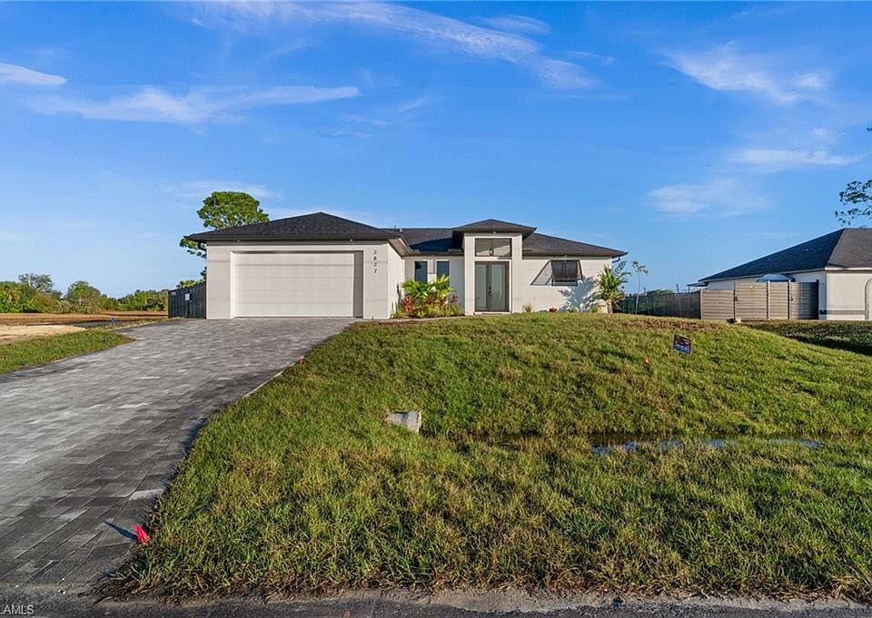 Welcome to the "Moonstone" Model. This amazing home is the perfect blend of value, comfort, luxury, style, and security. This beautiful new construction is built for everyone who wants to live with all the comforts of 'home.’ Impact windows and doors, European style kitchen featuring soft closing cabinet doors, drawers and Blum hardware, high-end appliances, double oven, hood, cooktop, wine cooler, and much more. Master bedroom with custom designed built in walk-in closet, master en-suite with glass shower enclosure, double vanity, and linen closet. Two spacious bedrooms with walk-in closets, guest bathroom with glass shower enclosure. Home offers open concept layout with 10-foot-high interior ceilings, 8-foot-high designer doors. Outdoor kitchen with marble countertops and 1/2 bath by the pool, ready for enjoyment 12' x 24' beautiful pool with Sun Ledge, 2 car garage, washer, dryer, and laundry sink. Engulf in the multitude of upscale details that you must see to appreciate. Enjoy your day by the pool or explore everything Cape Coral has to offer. Do not miss out on this one-of-a-kind opportunity! Schedule your showing today and make this beauty your home!