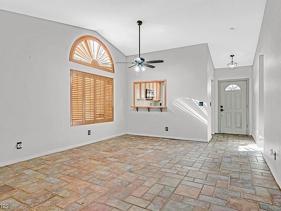 amazing Vegas weather in the front courtyard entry or under the backyard covered patio. Inside the home