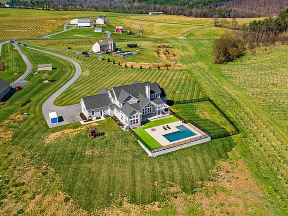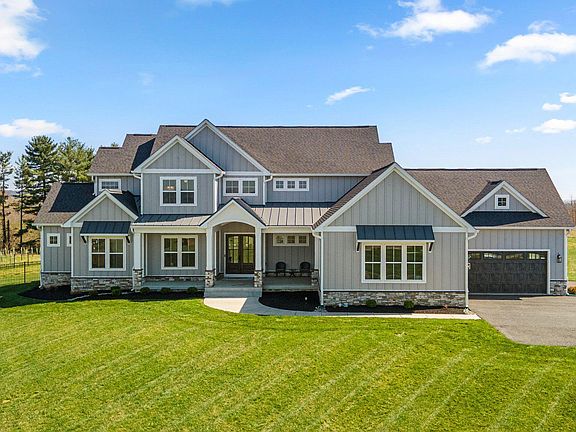 This stunning custom-built home blends timeless style with elevated modern finishes—inside and out. From the moment you arrive, you're greeted by a charming & spacious front porch, and panoramic mountain views that set the tone for what's inside. Step into a show-stopping great room with vaulted ceilings, a statement brick fireplace, and a full wall of windows flooding the space with natural light. The chef’s kitchen is equally impressive, featuring an oversized island, high-end appliances, soft-close cabinetry, and designer backsplash. The dining room features a vaulted ceiling and walls of oversized windows- Direct access to the patio and pool area makes it perfect for entertaining. Large walk-in pantry offers exceptional storage with custom shelving systems, multiple levels of organization, and space for small appliances, bulk items, and cleaning tools. Also located on the main level is a well-appointed mudroom with direct access to the 3-car garage, custom drop-zone storage potential, and an additional laundry hookup for added flexibility. A stylish half bath is conveniently located for guests, and a dedicated home office sits just off one wing of the dual primary suite—ideal for those who work from home or need a quiet retreat. The main-level primary suite is generously sized and positioned for privacy and convenience. This spacious retreat features 10-foot ceilings, recessed lighting, and large windows that provide natural light. Complete with sitting area that leads to the back patio. The main-level primary bathroom is a unique retreat, boasting dual "his and her" wings with vanities and walk-in closets, meeting in the middle at an oversized shower with designer tile, and a spa-like vibe. Upstairs, you’ll find two generously sized bedrooms connected by a Jack-and-Jill bathroom, featuring separate vanities on each side of the shared bath. A third upstairs bedroom is served by a full hall bath, ideal for guests or additional family members. Just off the landing is a versatile flex space, perfect for a teen hangout, playroom, secondary office, or quiet reading nook—designed to adapt with your lifestyle. The fully finished walk-out basement offers incredible versatility and nearly a home within a home. With two additional bedrooms and two full bathrooms, it’s perfectly suited for guests, extended family, or multi-generational living. A spacious entertainment zone anchors the level with a large media area, game space with ping pong and billiards, and a full wet bar featuring sleek cabinetry, quartz counters, and a beverage fridge. There’s also a dedicated office for those working or studying from home. Step outside to your private oasis—where a heated saltwater pool, pergola-covered patio, and professionally landscaped yard await. Whether you're lounging by the pool or enjoying a quiet evening by the fire pit, this home was built to impress in every season. Don’t miss the rare opportunity to own a home that combines luxury, function, and panoramic views in one of Middletown’s most sought-after settings. Additional recent upgrades include a whole-house generator and top-of-the-line water filtration system.