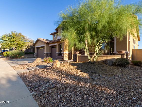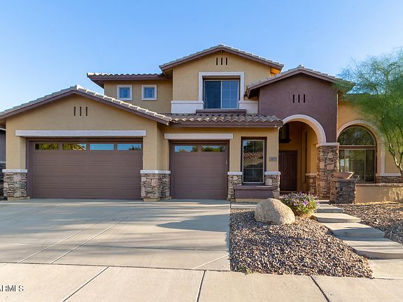 Home, sweet home! 3.25% Rate comes with current assumable loan for VA and non VA! Solar to convey and Seller's will pay off the balance at closing. Virtually no monthly electric bills.This amazing 5 bed, 4 bath residence in Anthem Parkside is looking for its new owners! A stunning facade w/stone accents, 3 garage spaces, a manicured landscape, and a welcoming front porch are just the beginning. Discover a spacious dining & living area w/soaring ceilings, perfect for entertaining. Elegant flooring, dazzling light fixtures, and custom palette throughout! Continue into the sizeable family room, boasting an impressive stone fireplace to keep you warm and cozy. The fabulous kitchen is equipped w/upgraded cabinetry, quartz counters, subway tile backsplash, a pantry, and stainless steel appliances. Home is equipped with whole home water filtration, RO and water softener. Double doors open up to the grand primary suite, showcasing outdoor access, a walk-in closet, and a lavish ensuite w/dual sinks. Upstairs you'll find a cozy loft plus a large bonus room w/balcony access and soft carpet, ideal for an entertainment center! Lastly, the wonderful backyard includes a covered patio, view fence, extended paver seating area, a fire pit, built-in BBQ, putting green, a refreshing pool, and the most beautiful views that are even better in person! New roof above great room / kitchen. Hop on I-17 to head up north for wine tasting or camping in Sedona, Prescott, or any of the northern Arizona vacation getaways. Lake Pleasant is 19 miles, within approx. 30 minutes for a relaxing day on the water.