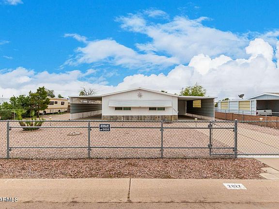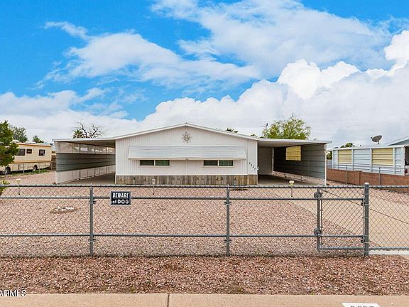 2 bedroom 2 bath mobile home features wood-look flooring in living areas and carpet in the bedrooms. Kitchen has SS appliances and a breakfast bar. Formal dining area with built in cabinets. Inside laundry with washer and dryer. The main bedroom has it's own private bathroom. Large front & back yard, property is enclosed with a chain link fence, a 2 car carport. Also includes RV hookups and a shed with electricity. No HOA, bring your toys!