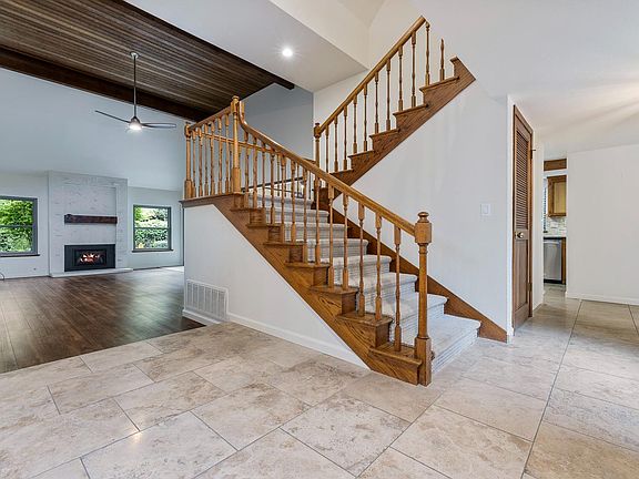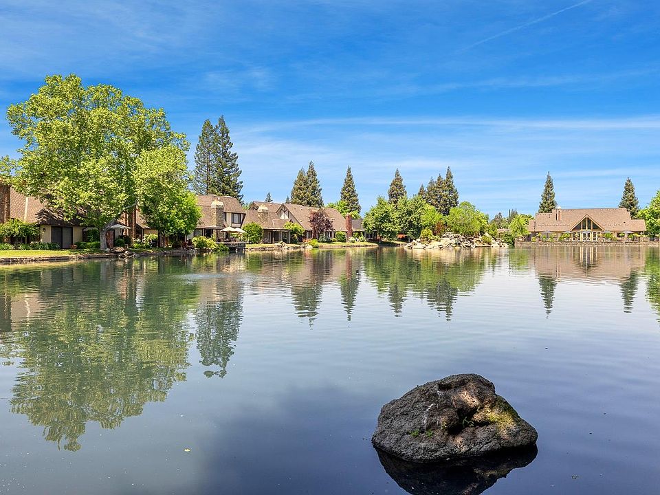 Step into your dream home in the prestigious Stonebridge gated community, where the spacious primary bedroom is conveniently situated on the lower level to the front of the home! The stunning primary bedroom offers natural light from the atrium and a luxurious spa-like ensuite with an expansive walk-in shower and dual sinks. This home is beautifully updated 3-bedroom, 2.5-bathroom residence offers a fairytale lifestyle across 2,315 square feet. With soaring ceilings and a spacious living room featuring a gorgeous fireplace, this home exudes elegance and warmth. Enjoy the modern updates of lovely LVP flooring and stylish light fixtures throughout, complemented by a cozy breakfast nook that invites leisurely mornings. Upstairs are two generously sized bedrooms and an updated bathroom for family or guests.The serene outdoor space boasts beautiful landscaping, a tranquil fountain, and a covered patio ideal for relaxation or entertaining. This lovely community also features close guest parking, water included in the HOA, stunning pools and ponds, tennis courts, clubhouse access and front and backyard maintenance. This stunning home is just minutes away from Fresno's finest restaurants, schools, and shopping making it the perfect sanctuary for those seeking luxury living with convenience at their doorstep. Don't miss your chance to call this enchanting property your own!