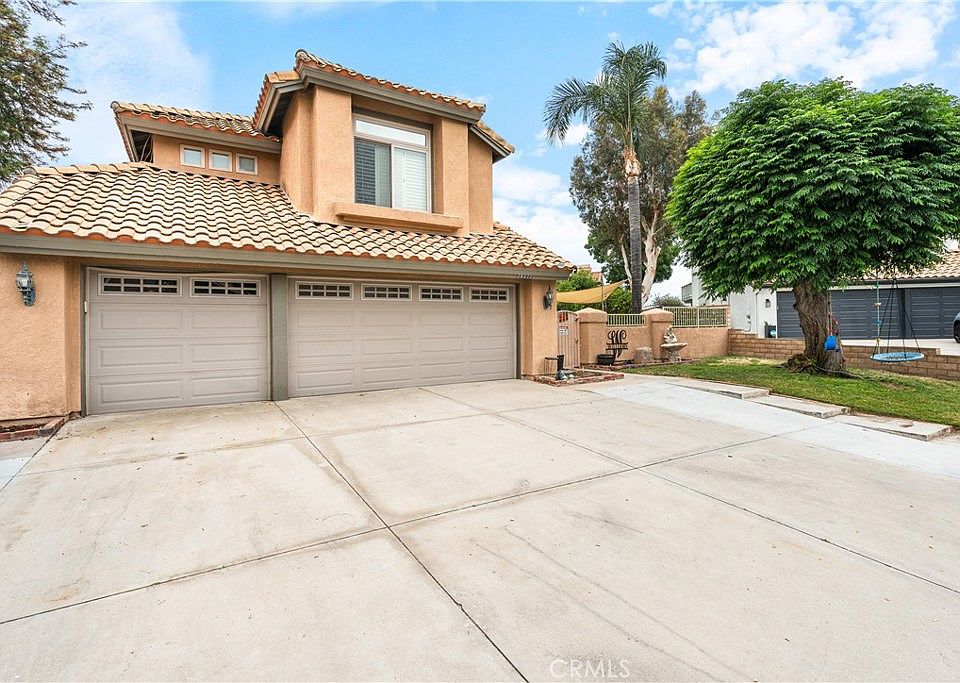 Tucked away at the end of a quiet cul-de-sac, this stunning 4-bedroom, 2.5-bathroom pool home, with 2,174 square feet —with NO HOA fees. One of the standout features of this home is the fully paid-off solar panel system, which nearly eliminates your electricity bills, making it as cost-efficient as it is comfortable. The floor plan boasts a two-story ceiling, creating an airy and welcoming ambiance. Recently updated, the kitchen features exquisite quartz countertops, sleek white cabinets with convenient pull-outs, and recessed lighting. Enjoy spa-like relaxation with updated vanities, mirrors, and flooring in all bathrooms. Stay cool with upgraded energy efficient windows, dual air systems - one of the systems was replaced 2024 - and a whole house fan. Step outside into your personal retreat. Mature palm trees and lush plants surround the yard, enhanced by custom lighting. Swim in the pebble-tech bottom pool or unwind in the raised, heated spa with an overflow waterfall. A tile roof, fully landscaped yard, and a three-car garage with electric vehicle charger complete this home's impeccable exterior. Located in the desirable Redlands High School district, this home offers top-tier education opportunities. Enjoy quick and easy access to major freeways and nearby shopping centers, making your daily errands a breeze.