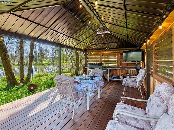 Secluded waterfront paradise. Step into fishing/canoeing right from your own property. Enjoy endless evenings in the company of deer, turkey, hummingbirds, eagles... Clear Lake Estates is a horse friendly area with riding trail easements & a community riding field. Come to this move-in ready home with all the expected upgrades. Delight yourself with year-round water views from your bedroom, living and dining room. New: Heat and air system, water heater, energy efficient vinyl windows, commercial grade waterproof laminate floors, downstairs carpet, & freshly painted exterior. Two FPL one gas & the other wood. The kitchen was upgraded in 2019, with all new appliances. The roof was installed in 2013. For the outdoor enthusiast there is space for sport equipment, plenty of room to store everything you own including your RV. For the professional with equipment: There is parking & storage for work equipment and additional space for all your tools and supplies in a 40x60 Quonset hut. Inside the shop you will find a 20x20 insulated workshop with multiple 110 AMP and 220 AMP outlets. For the garden lover: You will enjoy this park-like level lot with many fruit and nut trees, mature grape vines, variety of berries such as blueberries & thornless blackberries. For your veggies you will find 10 large newly built redwood raised beds with new soil, all on level terrain. The garden already has an established asparagus bed, artichokes, dwarf cherry trees, and rhubarb. For the amateur farmer: You will find a beautiful chicken coop with plenty of roaming space for happy hens and goat a corral with climbing platforms to keep your goats romping. For the entertainer: For those who love to entertain, there is a magnificent custom-built WATERFRONT pavilion with a TV mount. This pavilion can suit the pickiest entertainer! An ideal setting for your most important guests (your family). Enjoy year-round family gatherings, birthday parties, football games, graduations...