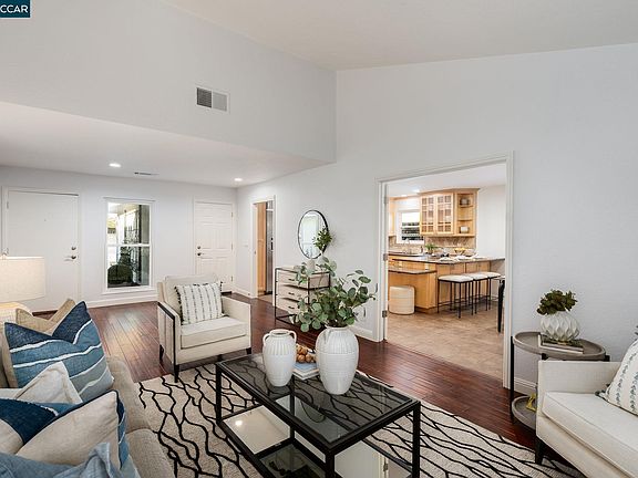 Welcome Home to Style, Comfort & Convenience. Beautifully updated single-story with large FR addition located just moments from Athan Downs Park and close to all three highly rated San Ramon schools. Excellent commute location with convenient access to Silicon Valley and San Francisco. Recent improvements include fresh designer paint, new carpet, and refreshed landscaping. The updated kitchen features granite countertops, custom cabinetry, stainless steel appliances, and a cozy fireplace. Both bathrooms have been remodeled with modern finishes. A rare 300+ sq ft family room addition off the kitchen provides valuable extra living space—ideal for entertaining, play, or everyday relaxation. Glass French doors open to the yard, creating a spacious and light-filled flow. The home offers four bedrooms, including a private primary suite with a remodeled bathroom. One bedroom has been converted to a dedicated home office. A stylish hall bath completes the well-designed single-level layout. A fantastic opportunity to enjoy comfort, function, and an exceptional location near parks, trails, and top-rated schools.