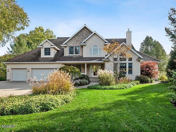 Escape the everyday with this captivating 6500 sq. ft. custom home situated on 2.3 wooded acres w/ fabulous natural lighting! Desirable location near Glenlord Beach, Tosi's Restaurant & world class bakery Bit of Swiss. Stunning home featuring an expansive open floor plan, soaring ceilings, HW floors, abundance of windows, & upscale kitchen including Caesarstone quartz countertops, double ovens, sub-zero refrig., center island & dining area overlooking serene land. Great room is perfect for entertaining w/ built in cabinets, floor to ceiling windows & gas log fp. Home boasts multiple living areas, main floor master w/ access to outdoor decking, FP large jetted tub & steam shower. Main floor JR suite incl. FP is perfect for guests. Walkout basement is thoughtfully designed w/ large rec room, 6th BR, full BA & custom bar. Lush professional landscaping, multi-tiered decking, quiet setting & wild life viewing. This home has been loved & meticulously maintained by one owner.