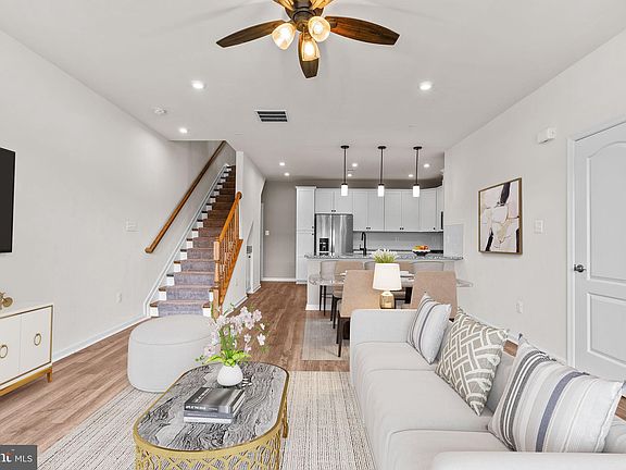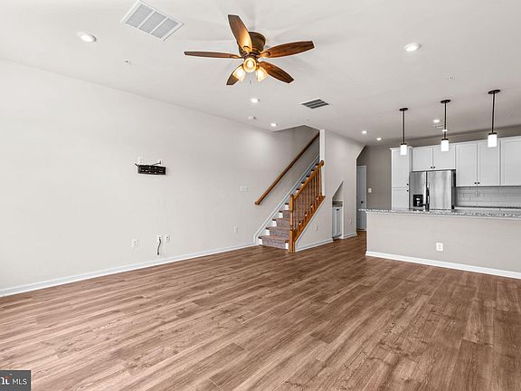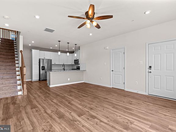 Rare opportunity! This home qualifies for an assumable VA loan at a competitive 3.6% interest rate—offering significant savings in today’s market. Modern townhouse condominium with 1,710 square feet, 2 bedrooms, 2 full baths, 1 half bath, and a 1-car garage built in 2022 in desirable Parkside. The open-concept walk-up level features a spacious living and dining area filled with natural light and a convenient powder room—perfect for entertaining. The adjoining eat-in kitchen impresses with stainless steel appliances, a peninsula breakfast bar with pendant lighting, crisp white cabinetry, generous counter space, and a classic white subway tile backsplash. Upstairs, a versatile loft opens to a covered balcony—ideal for relaxing or working from home. This level also includes a centrally located laundry area, two bedrooms, and two full bathrooms. The expansive primary suite feels like a retreat, complete with a spa-inspired bathroom offering dual vanities, a separate water closet, a large shower with a built-in wrap-around bench, and access to a walk-in closet outfitted with a custom organization system. Enjoy community amenities such as a swimming pool, fitness center, clubhouse, scenic paths, and playgrounds. Ideally situated near Fort Meade, MARC station, and BWI Airport, this home offers exceptional convenience for commuters and travelers alike. With easy access to major highways and regional transit, Parkside provides a perfect balance of comfort, community, and connectivity.