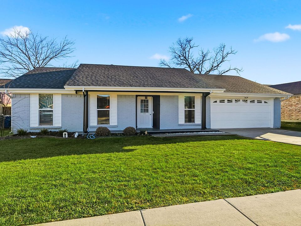 Charming mid-century ranch in Carrollton offering 4 bedrooms and 2 bathrooms in a prime central DFW location. The thoughtfully designed floor plan features an open-concept living area that flows into a bright, updated kitchen with stainless steel appliances and a clean, modern backsplash. New flooring throughout adds a fresh, contemporary feel. The private primary suite includes an en-suite bath, while three additional bedrooms provide flexibility for guests, a home office, or fitness space. Recent updates include a new roof in 2025, new windows and blinds, electrical panel, for added peace of mind. Back door opens to a private backyard with a covered patio - perfect for relaxing or poolside enjoyment. A two-car garage offers ample storage or gym potential. Quiet neighborhood with no HOA, conveniently located near parks, shopping, dining, and all that Carrollton has to offer.