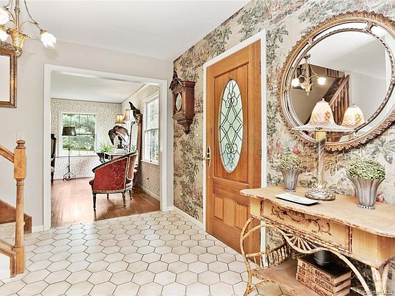 Traditional Center-Hall Colonial hiding right off High Ridge, on large, lush, tranquil lot. Much-cherished home situated in private corner, with a pristine, well-manicured yard, offering an oasis perfectly suited for outdoor entertaining, or for enjoying nature's serenity. Convenient to mid-ridges shopping and only 10 minutes from city center! Stately facade features Georgian columns, flagstone walkway, portico with a sweet Juliet balcony above, flanked with matching window boxes. Home's renovated floor plan improves flow on the main level, accentuated with crown molding, cornice blocks and custom millwork. Open concept kitchen is central to main floor, has marble counter, solid wood cabinetry, gas range & new stainless appliances. Breathtaking mantelpieces are perfection for living room & library's clean, gas-burning fireplaces. Imagine stargazing through the skylights year-round, soaking in the hot tub, in your solarium with Palladian window. The second floor Master bed has 2 walk-in-closets & Ensuite bath with marble tile shower. 3 more bedrooms, one Ensuite bath, & one shared hall bath finish second floor. Fully finished basement great for den, home office, family room, or ALL three, with storage & utility space to spare. Outside, the deck, terraced garden spots, mature trees, verdant lawn & flowering shrubs make for a yard you must see to believe! This home is the perfect balance of casual elegance, comfort, and a country feel paired with city living.