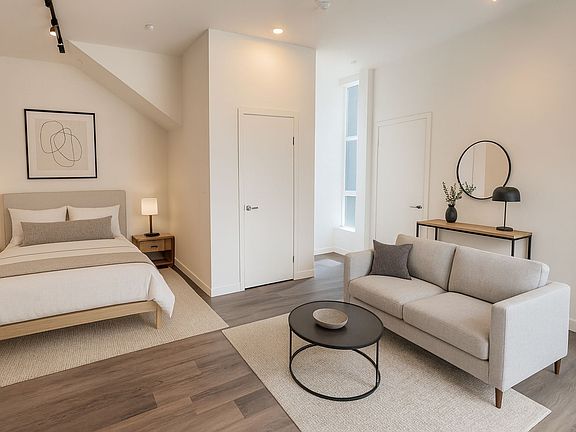 Inside your new studio, you'll enjoy bright, open-concept living with high-end finishes designed for today's lifestyle. Each home features in-unit laundry, energy-efficient AC and heating, stainless steel appliances, and modern cabinetry. Select loft-style residences include soaring vaulted ceilings, creating an even more spacious, airy feel.