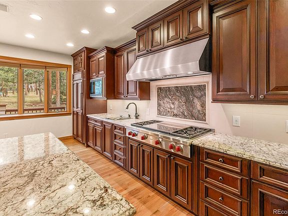 Stacked flagstone gas fireplaceBeautifully crafted kitchenVaulted great roomMother-in-law suitePrimary suiteBuilt in bbqStainless steel wolfe appliances