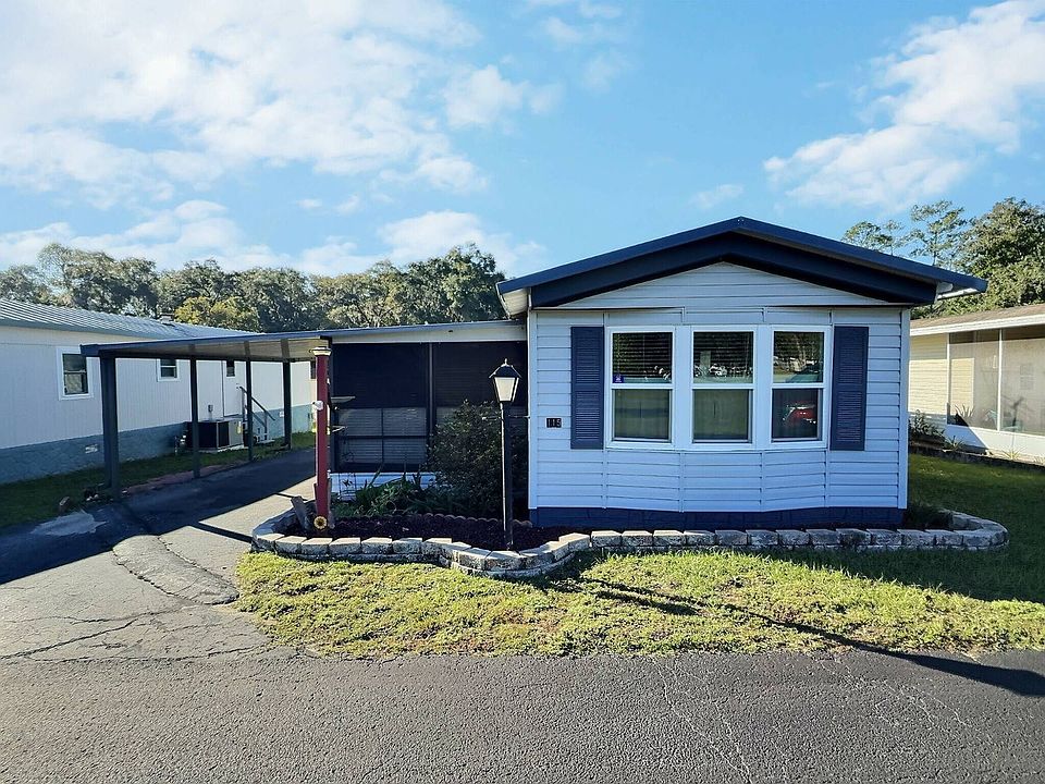 Welcome to Marion Pines. A 55+ community with a pool and clubhouse located near all of your shopping and dining needs! Low lot rent $432/month. This 2 bed 2 bath plus den/office home is ready for you to move in. Walk in to find a bright and open living space. The oversized eat-in kitchen, with a fantastic view, boasts newer appliances, newer cabinets, tons of counter space and room for a dining table. Bonus room may be used as a 3rd bedroom, office, craft room or sitting room. Metal roof and vinyl siding both have extra insulation. New double pane windows. New 40 gallon water heater and a secondary 2 year old 19 gallon water heater takes the worry out of running out of hot water. Whole home water filter system. Window shades. Antenna on roof to access local TV stations. Community well hookup is located at rear of trailer for irrigation use. Relax outdoors in your 20x10' screened room. Protect your vehicle under the 22' carport. Did we mention storage? 10x9' shed and 4' space under the trailer offer ample storage space. Electric lawn mower and weed trimmer in shed are included. Call to see this home TODAY!