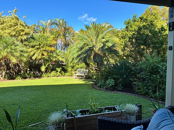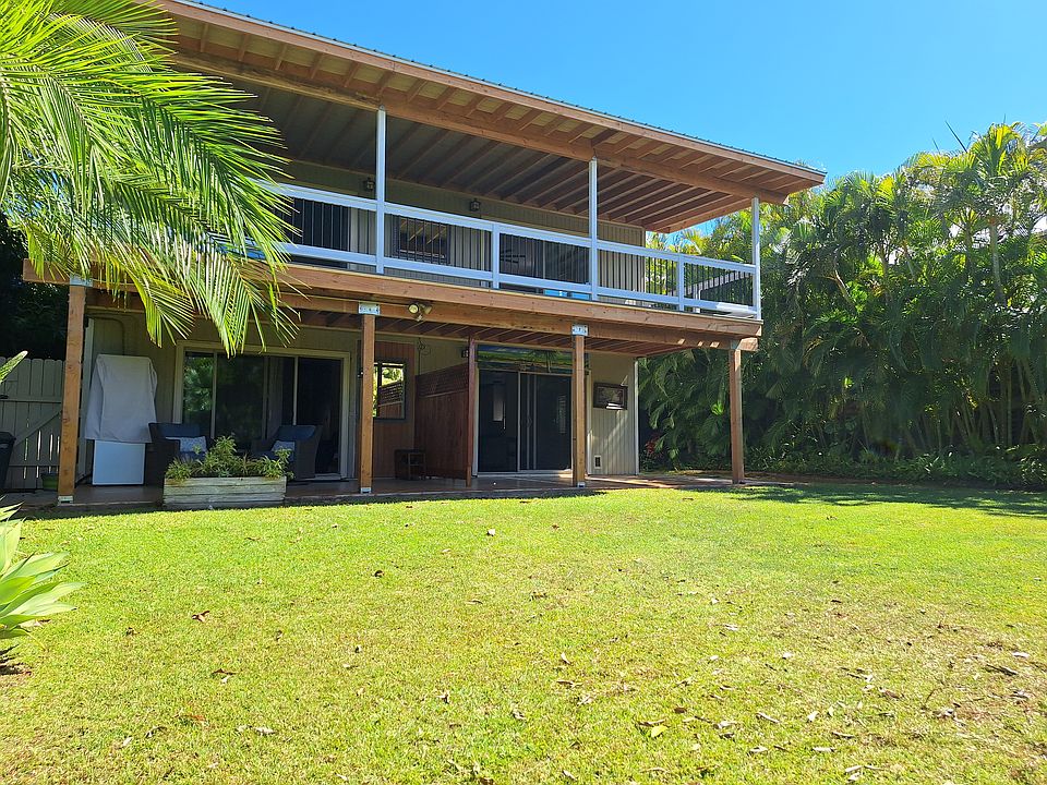 The downstairs living area opens to the lanai and the lush tropical backyard oasis perfect for relaxing and entertaining.