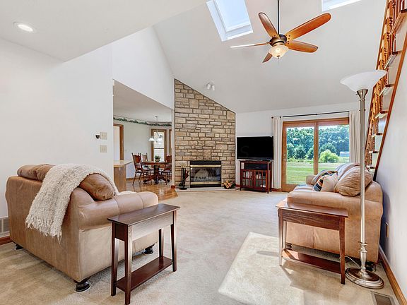 Location, Location, Location! Charming home on over an acre of land. In the country, but minutes from shopping, parks, and highways. Open floor plan with 4 spacious bedrooms, and 2 1/2 bathrooms. Beautiful custom woodwork, some hardwood floors, and woodburning fireplace. Loft and 4th bedroom is located on the second floor. Upstairs has an unfinished area that could accommodate a 3rd full bathroom and walk in closet creating a full suite. Newer PVC composite siding and trim. Newer mechanicals. Finished basement that makes a wonderful man cave, media room, fitness area, or additional family room. Pool table is included in the sale of the home. Lovely composite deck overlooks the neighbor's pond. Additional 220 outlet in the garage. New 6 inch gutters and downspouts. don't miss this one.