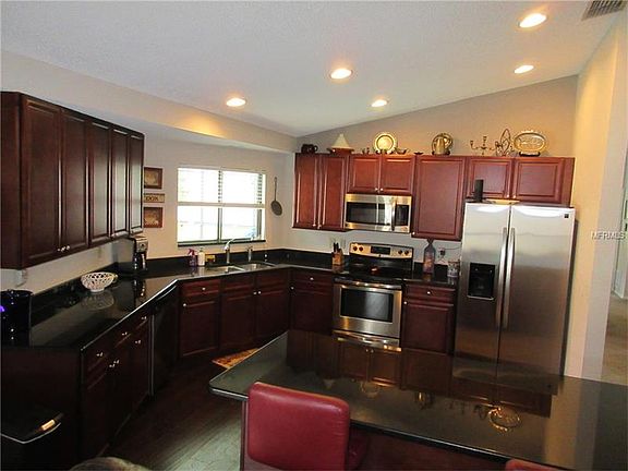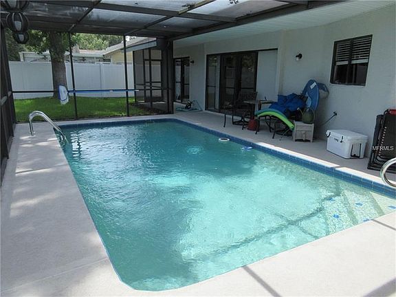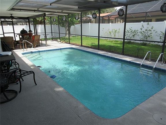 Beautiful Palm Harbor pool home with gorgeous updated kitchen and brand new 17 Seer Trane a/c system with wifi controlled t-stat. Other features include: extended/covered lanai overlooking screened pool, wood burning fireplace, white PVC fenced yard, new hurricane-rated garage door, water softener, rain gutters, irrigation system, new ceiling fans, inside laundry room with aux sink, electronic entry door lock, storage loft in garage and more. All this located in the popular subdivision of Lake Valencia West where you can enjoy the community park, playground and fishing pier on Lake Valencia and access to some of the most popular schools in Pinellas County. Easy access to Tampa to the east and the gulf beaches to the west and plenty of shopping. Ready for immediate occupancy.