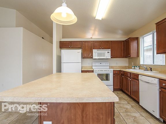 This charming home features a dining room, vaulted ceilings throughout, an island in the kitchen, a spacious family room, an open floor plan, a walk-in closet in the master suite, and a covered patio in the private backyard. Schedule your tour today!