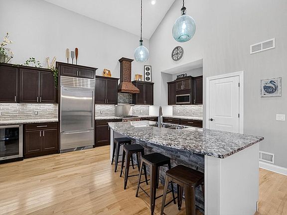 Granite center islandLake in your backyardFrontage on lake waubesaSoaring ceilingsIn-home office spaceTile walk-in shower