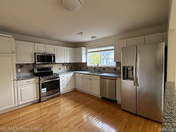 This Raised Ranch features an open floor plan, a kitchen with plenty of cabinets, a granite countertop, an under-sink water purifier, and a cozy living room with a gas fireplace, ceiling fans in the Great room, and both bedrooms. Close to major freeway intersection: I-75, I-96, I-696, and M-5. Twelve Oaks Mall, vibrant nightlife, and many dining options with a mile. Due to the garages on the lower floor (there is no unit underneath), you may not hear any noise complaints. The mountain bike trail is located right behind the sub. HOA includes ground maintenance, water, sewer, and trash pick up. Novi School District.