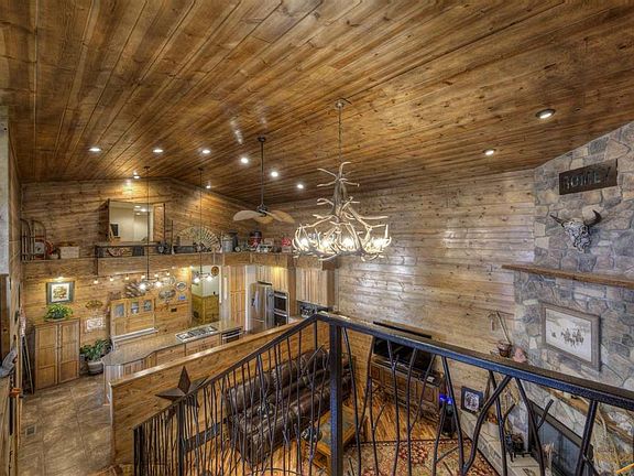 Perfect getaway or year-round residence at Angostura offered for the first time! This meticulously planned newer home features modern construction with a lodge feel and unique improvements at every turn. Tidy garage storage for all the vehicles and toys, workshop, guest cabin, raised garden beds and greenhouse, sprawling covered decks and open patios on multiple levels and attractiv vertical wood siding from the front all under a readily-identifiable red roof. Indoor features, well-appointed with top quality finishes and fixtures, include two-story stone fireplace, two full kitchens, custom bar, two large dining areas, open loft to living room, guest suite/man cave and so much more! This property would be ideal for large family gatherings or multiple owners looking for a variety of private and functional spaces, inside and out. Less than 1/4 mile to boat dock and a short commute into Hot Springs! Call today for your private tour of this amazing property. You won't be dissapointed!