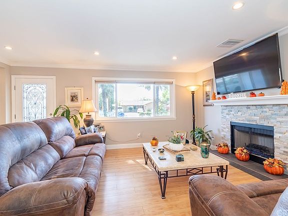 This beautifully updated home is nestled on a quiet cul-de-sac in one of Canyon Country's most sought after neighborhoods, and as soon as you lay your eyes on it you'll immediately recognize the true "Pride-Of-Ownership." Here are just a few of its many other outstanding features: ?Ornate wrought iron/stucco pillar fencing, a towering shade tree, lush landscaping and colorful brick planters enhance its eye-catching curb appeal ?The custom front door swings open to a flowing 1,374 square foot open concept floor plan that is in "Move-In-Condition" with recessed lighting, elegant crown molding, and complementary laminate flooring ?A huge picture window bathes the living room in natural light ?The family's cook is going to truly appreciate the open kitchen's abundant cabinets, center island, granite counters with full subway tile back-splash, stainless steel sink, gas range and the convenience of direct patio access ?Large formal dining room ?3 bedrooms; The large master suite has a walk-in closet plus a beautifully appointed bathroom ?A total of 2 bathrooms ?Energy efficient dual pane windows ?Central air & heat for year-round comfort ?Copper plumbing ?You're going to spend countless hours enjoying the private backyard's huge custom patio with its fireplace, gigantic built-in barbecue station with granite counters, prep sink and refrigerator, ?2 car direct access garage, and huge side gated RV space ?Call me today for all the details and I'll gladly arrange your private tour.