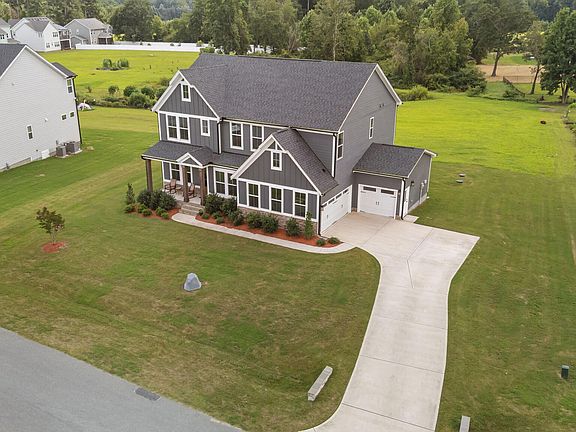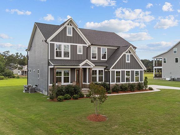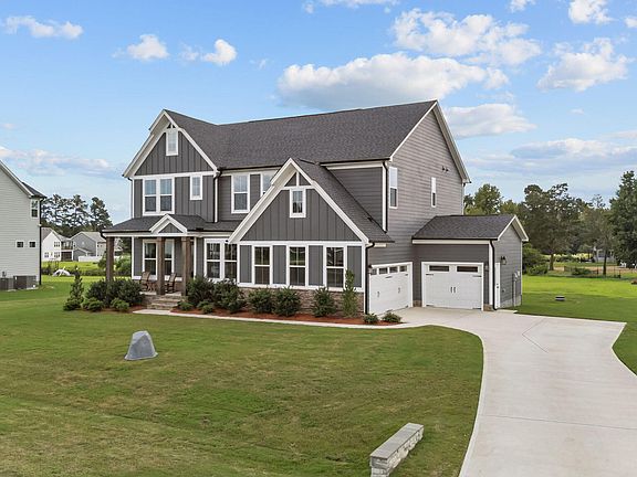Introducing the stunning 'Drees Homes Vanderburgh' floor plan, tucked away in the peaceful Morgan Pointe community of Fuquay Varina! This home beautifully combines timeless stone and board-and-batten architectural elements with a thoughtfully designed interior that is sure to impress. Step inside to a bright, open layout, perfect for entertaining. The gourmet kitchen flows seamlessly into the spacious family room, highlighted by a tile-surround fireplace. A first-floor guest suite offers the ideal retreat for visitors, while upstairs you'll find a luxurious primary suite with a spa-like bath and walk-in closet. Enjoy outdoor living year-round on the large screened porch with its own stone fireplace, overlooking the expansive backyard. The 3-car carriage garage provides plenty of storage and convenience. Located just minutes from downtown Fuquay Varina, shopping, dining, and parks, this home delivers both style and function in one of Wake County's most desirable neighborhoods.
