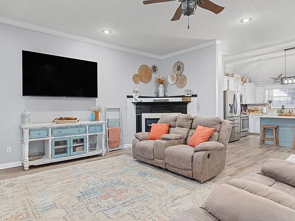 Step inside this beautifully updated 2016 home in the sought-after Oakland Community! Featuring an open split floor plan with 3 bedrooms and 2 baths, this home offers a spacious living area with a gas-log fireplace and a stylish kitchen with updated refrigerator, gas range stove, dishwasher, countertops, flooring, a large island with seating and rain gutters. Enjoy the spacious, conveniently located laundry room and a 0.46 acre lot with a fenced backyard, covered patio, stunning sunset views, and a double detached garage. Move-in ready and full of charm!