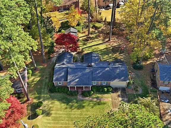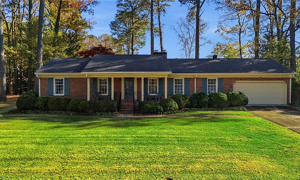 Don't miss this charming 4 bedroom 2,300 sq. ft. brick ranch in the sought-after Green Meadow Point neighborhood in Western Branch. This one owner, welcoming home offers vintage touches throughout, the option to join the nearby community pool, and sits on almost half an acre with a beautiful serene backyard. Interior features include two decorative fireplaces, hardwood floors throughout the living spaces & bedrooms, & a large, sunny family room perfect for holiday gatherings. Major systems that have been replaced include the Heat & AC (2019) Roof (2017),& Water Heater (2020). A bonus detached outbuilding has been converted into a theater room, complete w/ velvet chairs & its own heating & cooling. Seller to make no repairs; however, this is not your average "as-is" home. NO HOA here, convenient to shopping, dining & interstates. Make your appt to see today, and make this home your own!