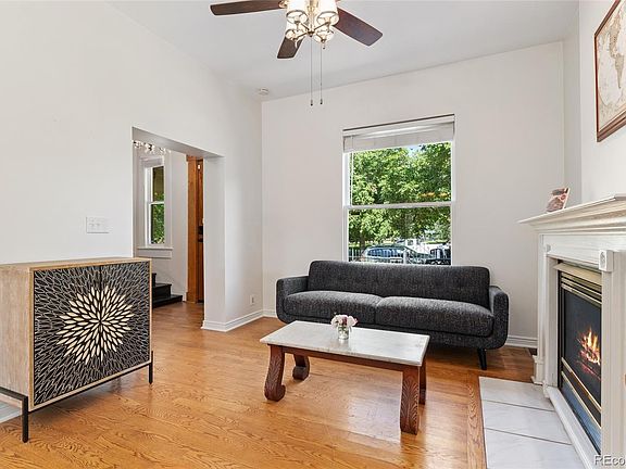 Step into a stunning Victorian gem that blends 19th-century character with modern comforts in one of Denver’s most desirable historic neighborhoods. Featured in a 2014 issue of HGTV Magazine for its classic gingerbread-style charm, this home offers a unique opportunity to live in a beautifully preserved piece of history. Located directly across from Fuller Park with its large dog park, & within walking distance to public transportation, restaurants, coffee shops, the library, & top medical facilities, the location offers the perfect balance of community & convenience. Inside, high ceilings, large windows, original architectural details, & a welcoming foyer set the tone. The living room features a picture window overlooking the park, a fireplace, & opens to the dining area & adjoining flex room. The kitchen is spacious & functional with stainless steel appliances, granite countertops, a gas range, & ample cabinetry, leading to a covered back deck ideal for entertaining. The landscaped yard includes perennial beds, mature trees including a peach tree, & a newly installed sprinkler system. Upstairs, three bedrooms include a spacious primary suite with a fireplace & a professionally installed 2024 closet organization system, while one of the secondary bedrooms opens to a private upper deck perfect for enjoying sunsets. Both full bathrooms include jetted tubs for added comfort. The home has been thoughtfully updated with a new roof, radon mitigation system, & smart garage door opener with MyQ app connectivity, all completed in 2024. Additional features include a newer furnace & air conditioner, a whole house fan, fresh paint, & a new copper water line. The detached garage includes electric heat, a dedicated subpanel, attic storage with lighting, & garage doors that open to both the alley & the backyard. TV mount included. With abundant street parking & a quiet neighborhood setting, this home offers timeless appeal in a prime location.
