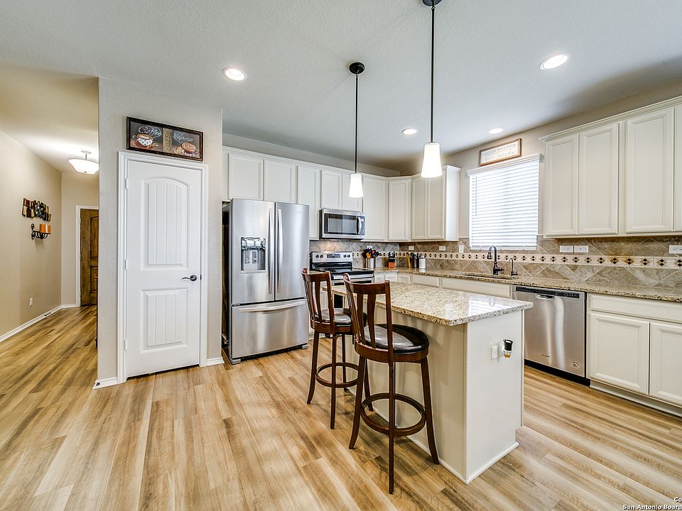Gorgeous 4 bed/3 FULL bath home in the Ridgemont neighborhood! Unique floor plan with an attached mother-in-law suite that has its own bathroom in the front of the home. Beautiful modern kitchen featuring an island, granite countertops, stainless appliances and lots of cabinet space with an open floor plan. Large master suite with double vanity, oversized shower and walk-in closet. Back yard features a patio with extended cement for entertaining! Home features a water softener and an alarm system. Great location with easy access to highways, shopping and entertainment plus New Braunfels ISD schools! Don't miss out on this incredible home!