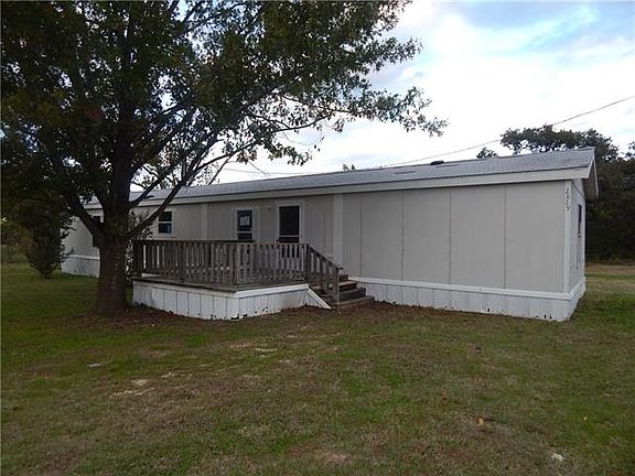 One-story manufactured home on large lot with lovely trees around. Front steps and back porch give a nice area for viewing the sunsets on the Texas horizon. Master bath has upgraded tub and separate shower. Galley kitchen with plenty of counter space and cabinet storage. Arched ceilings in bedroom and living rooms. Separate dining area and breakfast nook for formal and informal meals. Family-friendly design in well-kept condition.