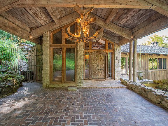 Masterfully designed around it's own environment, this uniquely built home is a celebrated property in Springfield, Missouri. Designed by the late Don Russell, this estate is nothing short of spectacular! The detail in this home is beyond what one can dream. The custom front doors sourced from Goa, India are circa 1820s. Pay close attention to the wood floors! There are over 550,000 mosaic pieces carefully assembled out of oak, walnut, and ebony including the 20,000 piece crocodile designed by Archetypal. The kitchen overlooks the spring-fed pond that runs throughout the property year round. The kitchen counter is made of 4 inch thick Carthage stone. Off the kitchen is a wine cellar with antique doors. The family room nothing short of amazing.