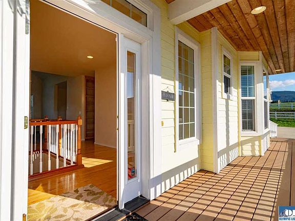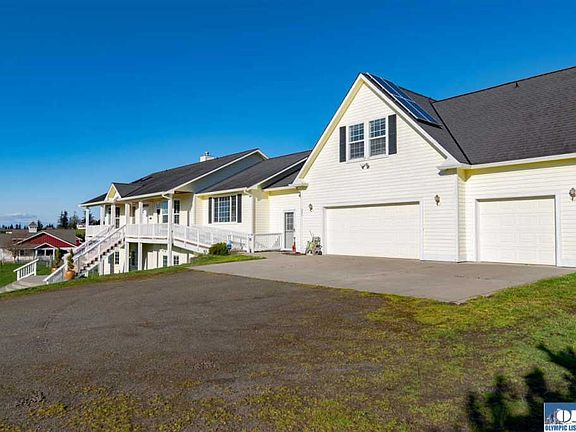 Double Master with a view on 2.4ac!Great for entertaining or Multigenerational living. 9âceilings, vaulted great rm & hardwood are just a few features in this well-built home. Views of mountain, lavender fields & the Straits. convenient wheelchair friendly main floor, master & entry. Equip with energy efficient heat pump & solar panels, Also a library & sauna & flex rm upstairs for hobbies. 3car garage plus 2 horse shelters, irrigation & fenced for animals if you desire. Near Sequim Bay & Carrie Blake Park