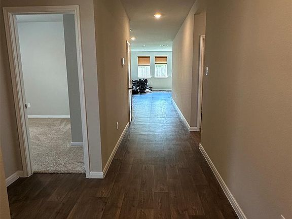Be one of the first to live in this like-new home on a lot with no back neighbors in one of Kyle's conveniently located neighborhoods. As you enter the long foyer, you walk into the spacious family room with ample natural lighting, open to the kitchen and dining area. An open layout and neutral finishes make it easy to personalize it, with vinyl plank flooring and large windows for ample natural light and low-maintenance. The kitchen features granite countertops, tiled backsplash, stainless steel appliances, recessed lighting, large deep farm-style sink, a spacious pantry, and a kitchen island for up to 4 counter stools. The secondary bedrooms are located off the dining area in the front of the house. The private main bedroom includes a huge walk-in closet and walk-in shower with a dual vanity. The backyard features a covered patio with no back neighbors and with irrigation front and back. Come and enjoy living in Southgrove, and its amenity center with a pool and playscape. Less than 9 minutes walking to the pool. MOVE-IN READY - Washer, dryer and Fridge included! Conveniently located just 4 miles from I-35 access, Kyle commercial areas including the new Costco, HEB, Home Depot, Seton Hospital, and many dining options.