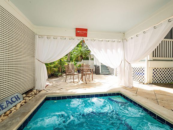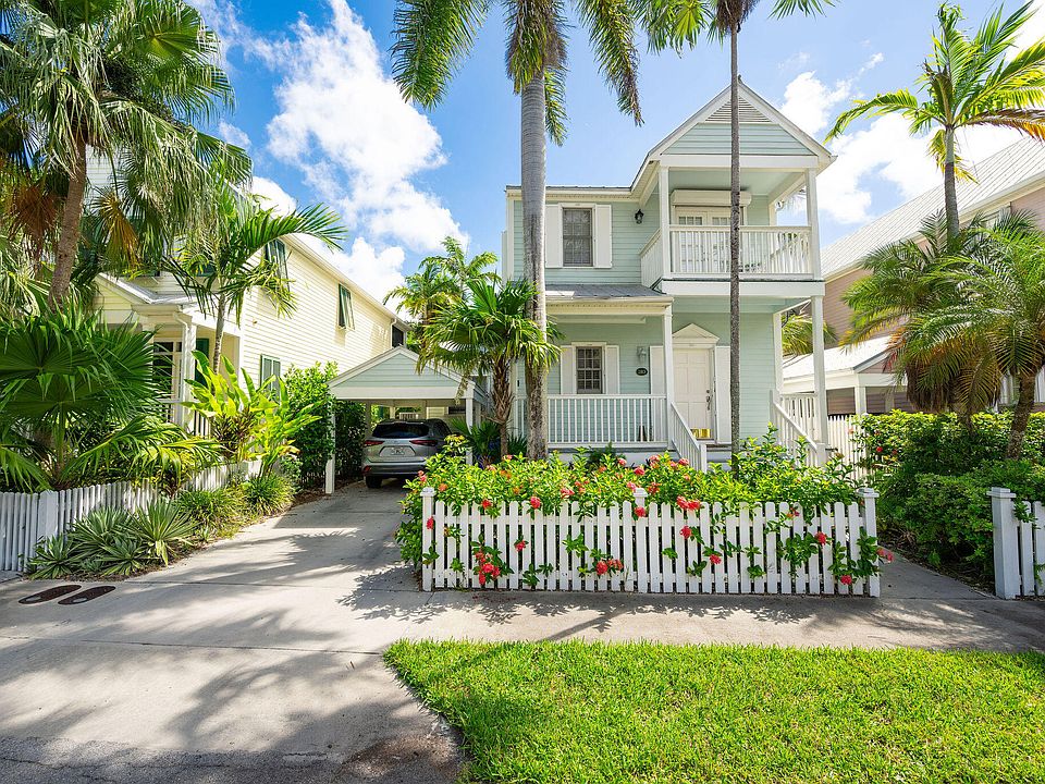 Nestled along the lush 16th fairway of the Key West Golf Club, this beautifully upgraded 3-bedroom, 2.5-bath residence offers the perfect blend of privacy, style, and island charm. A rare find, the home also includes a versatile office space that can easily serve as a fourth bedroom , ideal for guests or a growing family.Step inside the 1600 sqft area to discover a bright, open floor plan with an updated kitchen featuring modern cabinetry, stainless appliances, and sleek stone countertops. The living room opens to an expansive, fully-screened back porch and sun deck overlooking your private pool, complete with a gazebo, definitely a perfect oasis for relaxing or entertaining after a round of golf.Upstairs, the primary suite offers its own screened patio with tranquil views of the tropical landscaping and golf course beyond and high cathedral ceilings. Both bathrooms have been tastefully renovated with contemporary finishes, while the entire home is equipped with hurricane shutters, including coverage for the porches and upper decks.Additional highlights include:Covered two-car carport, low-maintenance tropical landscaping, quiet cul-de-sac location within the gated community (Sanctuary) and access to resort-style amenities including two heated pools, fitness center, and 24-hour securityWhether as a full-time residence or a luxury retreat, 283 Golf Club Drive delivers the best of island living just minutes from Old Town Key West.