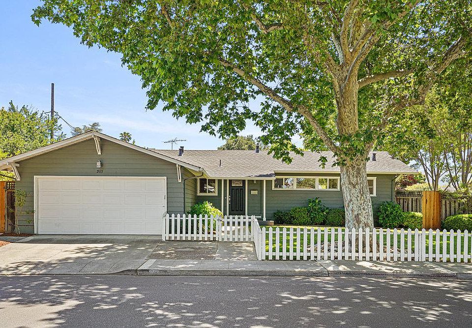 Beautifully remodeled Cuesta Park home with many fine features and amenities: Separate family room or home office with built in desk area as well as display/storage cabinetry, wood flooring throughout, double pane windows throughout, Andersen glass French doors, large living/dining area with gas log fireplace and oversized skylight, remodeled eat-in kitchen with granite counters, quality stainless appliances. Remodeled bathrooms with beautiful designer tile finishes, primary bath has double sinks, sun tunnel, oversized shower with shaving bench, closets with built-in closet organizers, central forced air heating and central A/C. Front yard has attractive picket fence, rear gardens feature newer wood fences, paver patios and walkways, generous patio area for entertaining and eating outdoors, mature trees and plantings including crepe myrtle trees, climbing wistaria, rosemary, two lemon trees. Walk to Bubb Elementary and downtown Mountain View shops, restaurants & weekly farmers market!