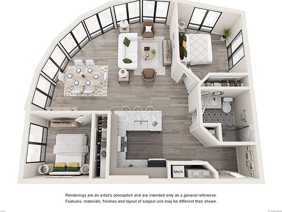 Contemporary styleQuartz countertopsQuality finishesGenerous closet spaceFunctional layoutDurable vinyl plank flooringStainless steel appliances