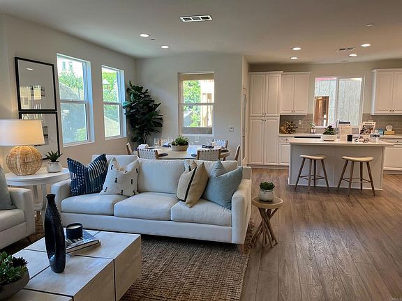 Mission Villas, Plan 2 model home is now on sale. Private & quiet, the plan 2 model sits on the north end corner of the building offering a bit more privacy. The model features white thermofoil cabinets with complementing white speckle quartz counters, and neutral subway tile backsplash, which picks up upgraded main floor LVP hard surface flooring beautifully. Balanced neutral upgraded carpet throughout, and to mention upgraded lighting in all the bedrooms as well. The home is among the very last at the Mission Villas II community. Purchase of the model does not include furniture and can be purchased at additional cost. Community offers all units certified Energy Star Build, and homeowner owned 8 panel solar system- NO LEASE. Enjoy the benefits of an all electric home, with innovative technology included. The home also includes Water Wise features and Wifi connected Phyn Plus system to help monitor your water usage. Neighborhood amenities include a Bar-B-Q, Bocce Ball Court, fenced dog run area, community green & tot lots, and plenty of guest parking. You will be minutes from Highway 78 & Interstate 15, with close access to Cal State University San Marcos and soon to open Kaiser Hospital, a lite rail SPRINTER Station, supermarkets, & popular restaurants. Just 15-20 minutes to the Coast! You could not find a more convenient place; come enjoy the San Marcos lifestyle!