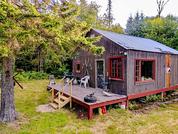 Tucked deep within the woods of Walden, this rustic Vermont camp has been the backdrop for stories told around countless campfires. Hand-built by one family in the 1980s and 90s, the cabin rests on 10.3 wooded acres that border more than 11,000 acres of protected wilderness. A standing seam roof shelters the single-level structure, where knotty pine walls, propane lamps, and a wood stove create a timeless camp atmosphere. The kitchen holds a diner-style griddle and gas cook stove, echoing a bygone era of long weekends and hearty meals. Sleeping space is abundant with custom bunks designed to hold an entire hunting crew or gathering of friends. Outside, stone walls and a fire pit invite late-night storytelling, while the wide front deck overlooks a clearing ringed by forest. Off-grid yet wired for generator power, this three-season retreat blends simplicity, seclusion, and adventure. With Caspian Lake and the renowned Hill Farmstead Brewery nearby, this cabin offers a lifestyle rooted in nature and Vermont tradition, ready to carry forward its next chapter.