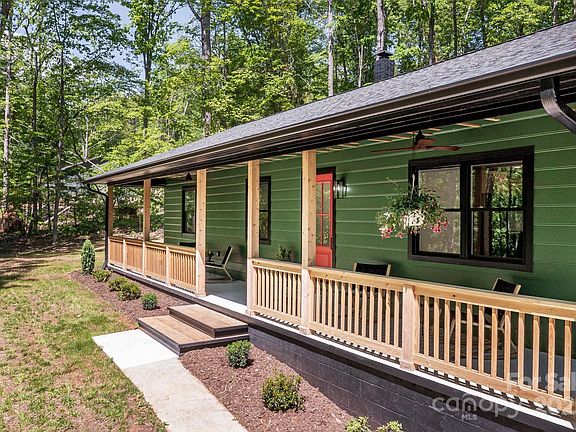 Relax and unwind on the covered front porch—complete w ceiling fans & serene views—perfect for enjoying quiet mornings or peaceful evenings. Tucked away on a private 0.85-acre lot, this meticulously renovated 3BR/2BA home blends mountain charm w modern ease—just minutes from downtown, South Asheville, & all the area has to offer. Inside, a bright open floor plan showcases a designer kitchen w quartz countertops, custom cabinetry & furniture-style island. A picture window in the living room frames wooded views, bringing nature indoors. The main-level primary suite features a spa-like bath, walk-in shower, dual vanity & custom closet. 2 additional bedrooms offer flexible living space. Enjoy the outdoors from the oversized back deck or the level side yard, ideal for play or pets. The extra-deep 2-car garage is perfect for a workshop, storage, or future expansion. With all-new systems & stylish upgrades throughout, this turn-key home offers quiet, refined living in a tranquil setting.