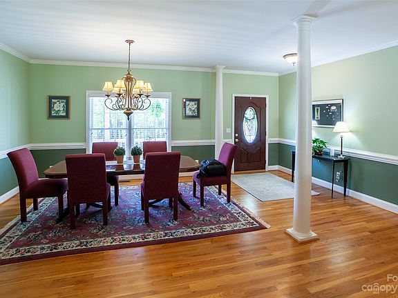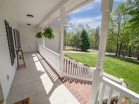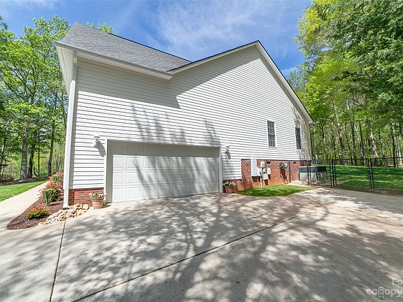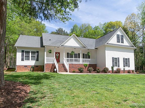 Incredibly well-maintained beautiful custom built split-bedroom floor plan featuring 3 BRs- 2 Full Baths, bonus room, 2 car garage. Covered front porch! Formal DR, GR, Kitchen that leads to the Vaulted EIK. Check out the laundry room w/ upgraded cabinetry including pull out pantry shelves, drawers & more storage surrounding the W/D. Plenty of storage space. Hdwd floors, custom built cabinets, gas log FP in the GR. Relax under your covered back porch that faces the wooded tree-lined fenced backyard with a wonderful, paved entertainment area & just in time to get ready to swim in the pool, add'l storage shed for landscape tools etc. Sharing the best for last, come sleep peacefully with this large, primary bedroom suite privately located at the rear of the home including a tray ceiling, garden tub, double vanity, garden tub, sep shower & 2 separate closets. Clover schools! Wired for 5.1 Surround sound & wired for speakers outside back porch, wired for generator, Irrigation in back yard.